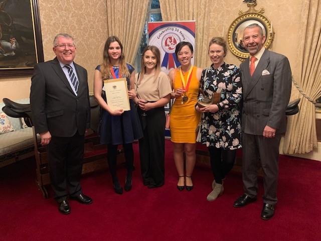 Leah Wright pictured centre at The Society of Master Saddlers annual saddlery competition 2020